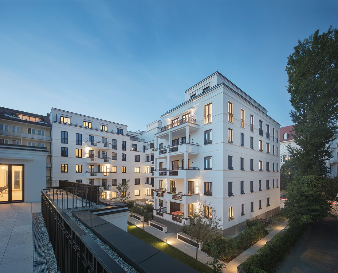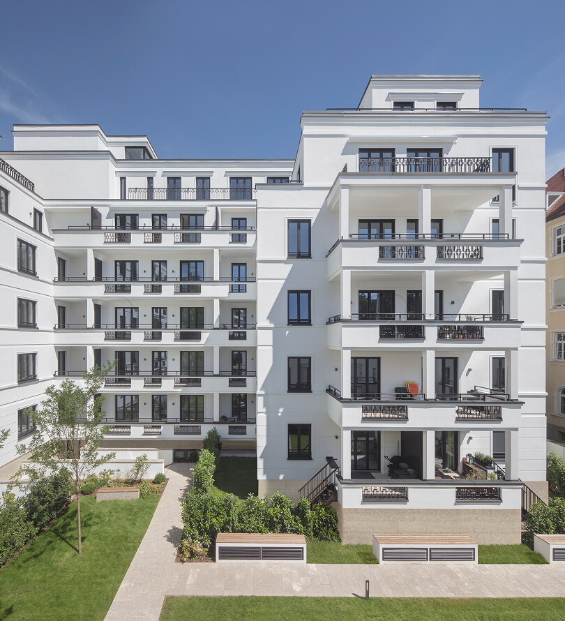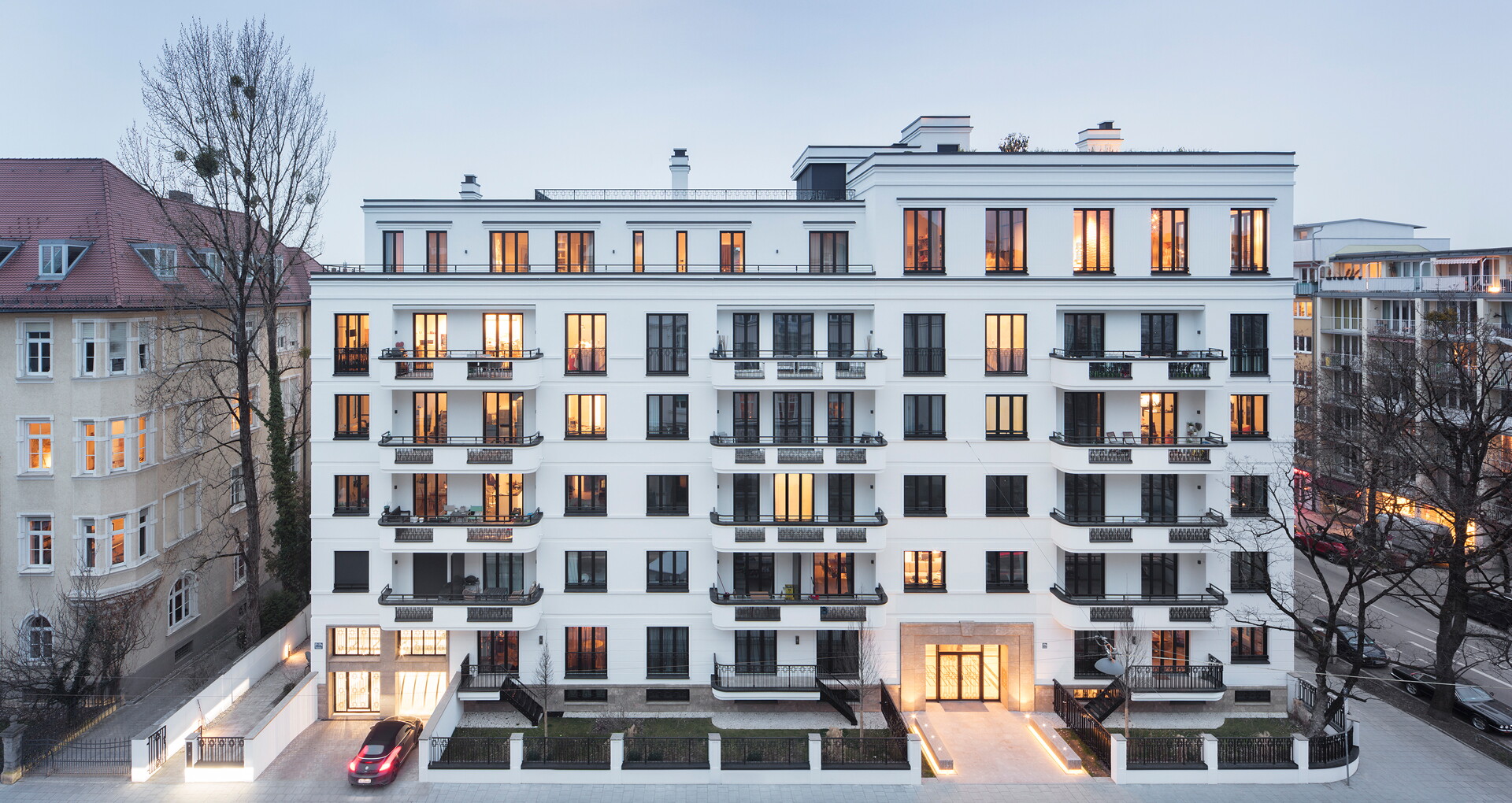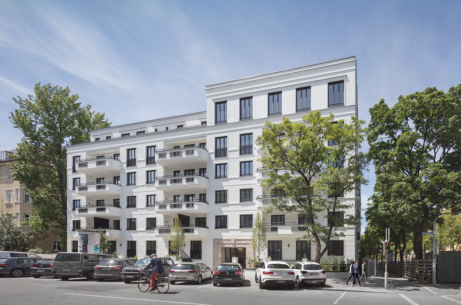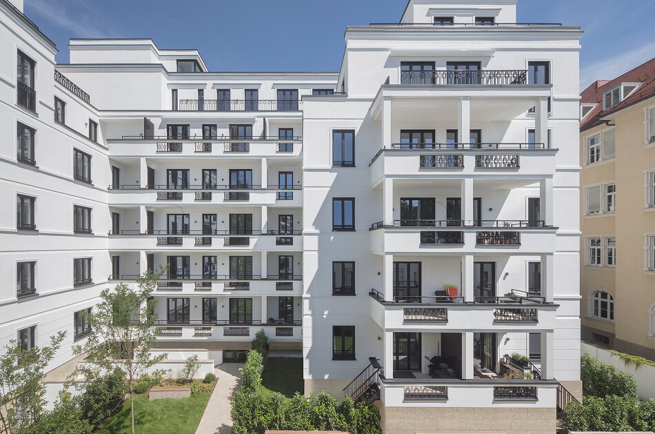 Haus Friedrich vereint klassische Schwabinger Eleganz mit zeitgemäßem Design. Die Fassade mit Natursteinsockel, Jugendstil-Elementen und großen Holz-Alu-Fenstern zitiert den Altbau-Stil – modern interpretiert vom Architekturbüro Landau + Kindelbacher. Hochwertige Materialien, klare Formen und ein durchdachtes Farbkonzept prägen das äußere wie innere Erscheinungsbild. Ein stilvoller Rückzugsort mit urbanem Charakter.