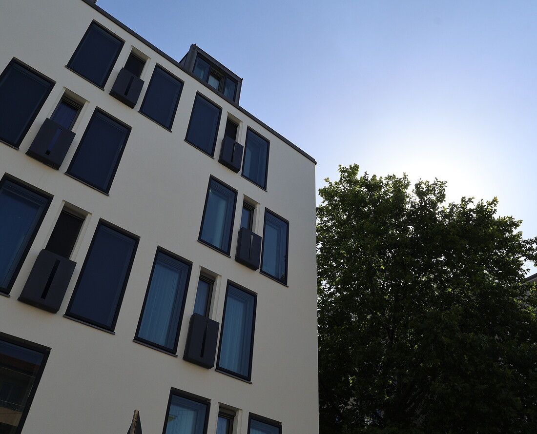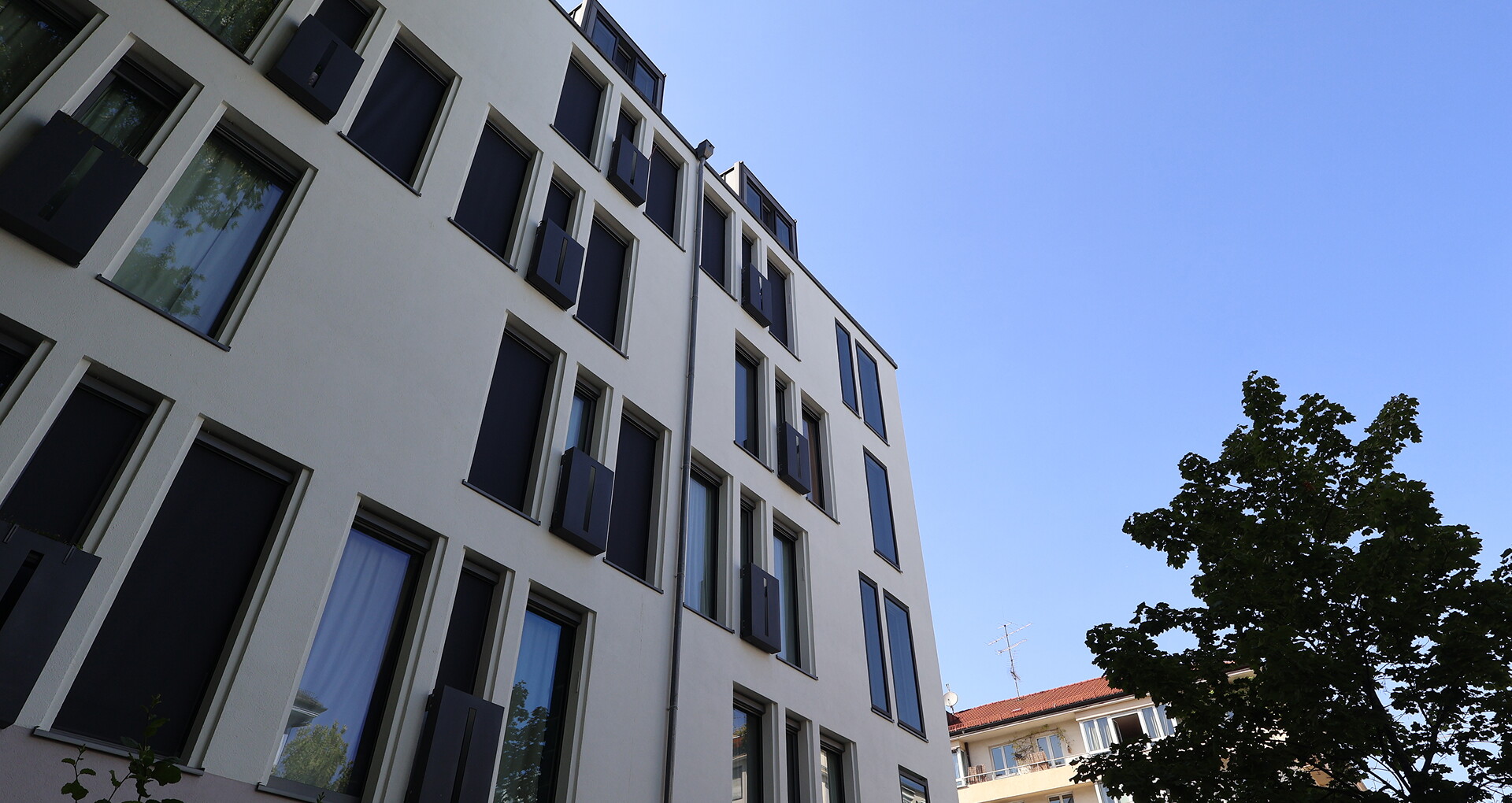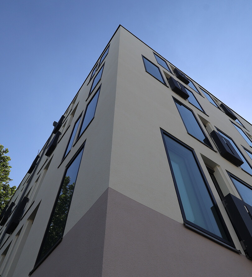 Die Hermann-Lingg-Straße 16 überzeugt mit urbaner Klarheit und architektonischem Selbstbewusstsein. Das markante Eckgebäude fügt sich harmonisch in die klassische Münchner Stadtkante ein und zeigt zugleich eine moderne, reduzierte Formensprache. Vertikale Fensterachsen, französische Balkone und die fein abgestimmte Fassadensymmetrie sorgen für ein lebendiges Erscheinungsbild mit Tiefe. Der Einsatz hochwertiger Materialien – von Aluminiumfenstern über fein strukturierte Geländer bis hin zur zurückhaltenden Farbgebung – unterstreicht die gestalterische Präzision dieses stadtnahen Rückzugsorts.