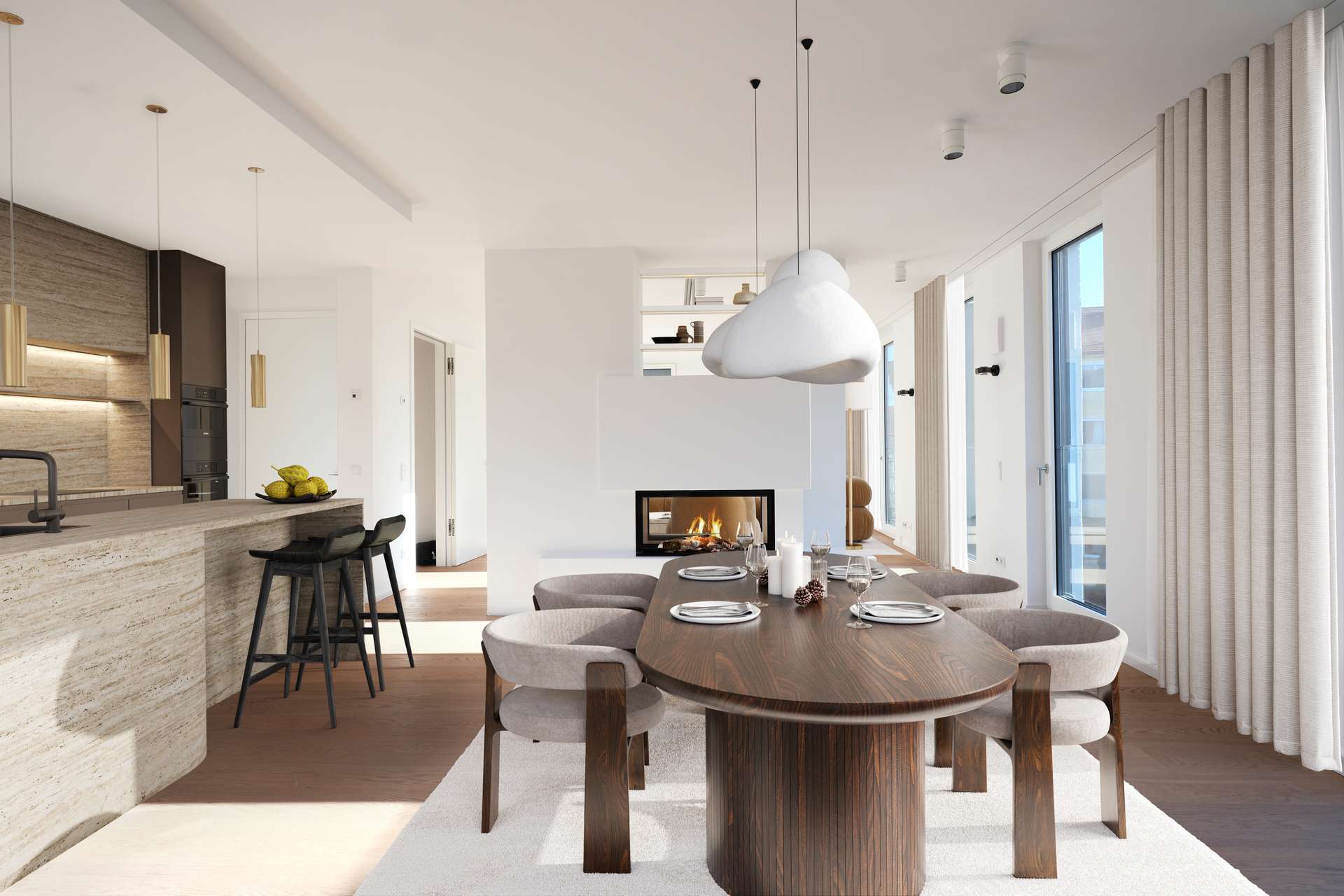 Dieses Penthouse in einem von Legat Living errichteten Neubau überzeugt mit privatem Liftzugang direkt in die Wohnung, hochwertigen Materialien und einem klaren architektonischen Konzept. Großzügige, lichtdurchflutete Räume mit hoher Deckenhöhe schaffen ein offenes Wohngefühl, das durch einen freistehenden Kamin stilvoll ergänzt wird.