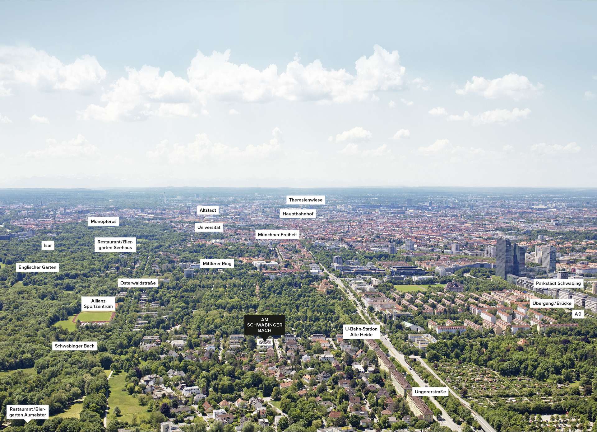 Das Penthouse liegt in einer der ruhigen Lagen Schwabings, nur zwei Gehminuten vom Englischen Garten entfernt. Die U-Bahn-Station „Alte Heide“ ist in nur 150 Metern erreichbar und bietet beste Anbindung in die Innenstadt, zur Münchner Freiheit, zur Parkstadt Schwabing sowie zur A9 und zum Flughafen. Einkaufsmöglichkeiten, Gastronomie und vielfältige Freizeitangebote befinden sich direkt in der Umgebung. Für das besondere Münchner Lebensgefühl: In weniger als drei Minuten erreichen Sie den Schwabinger Bach – perfekt für eine sommerliche Erfrischung. Ein weiteres Highlight: Mit dem Fahrrad gelangen Sie durch den Englischen Garten direkt bis zum Odeonsplatz, ohne dabei eine einzige Straße überqueren zu müssen – urbanes Wohnen trifft hier auf außergewöhnliche Lebensqualität.