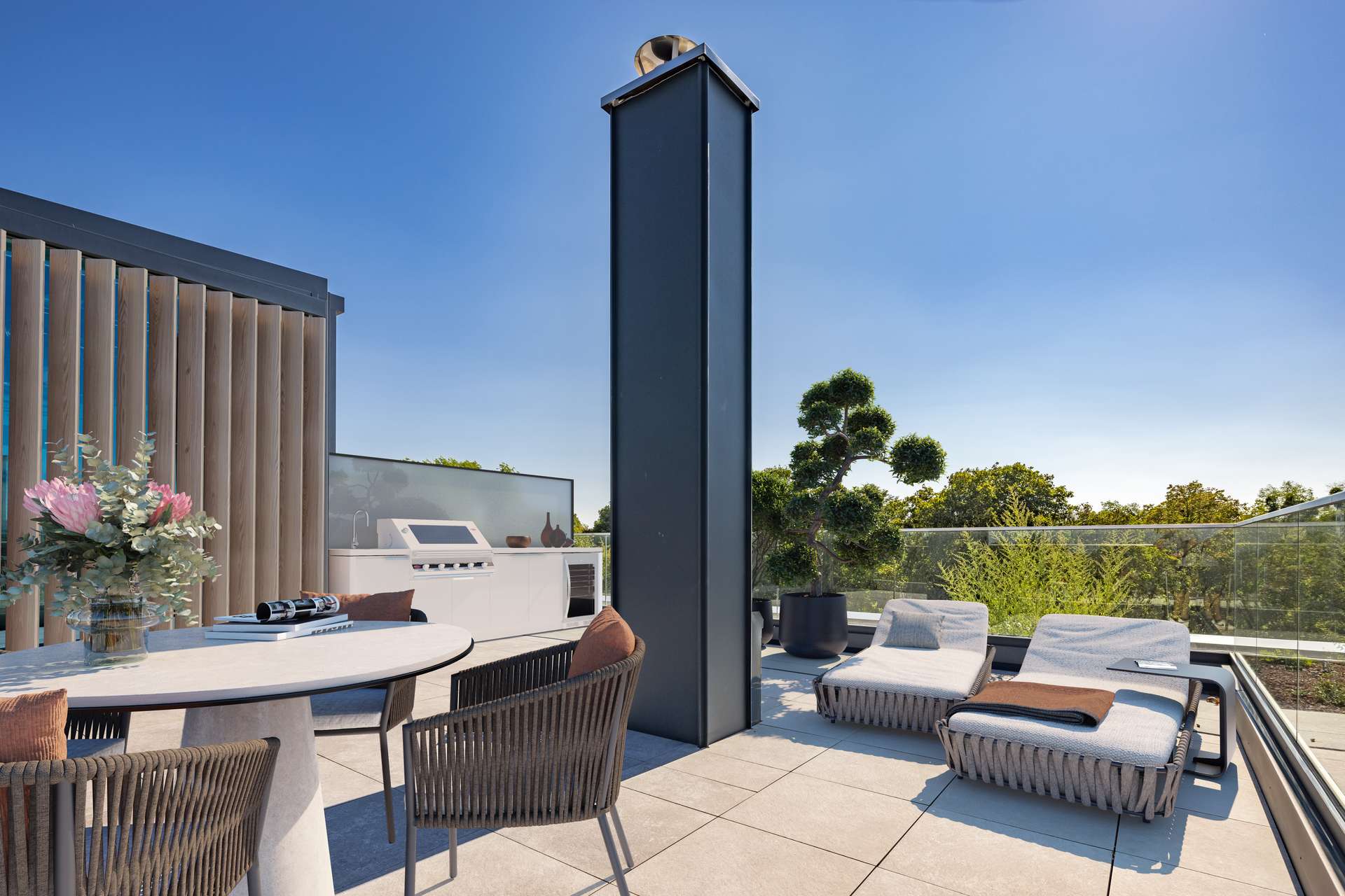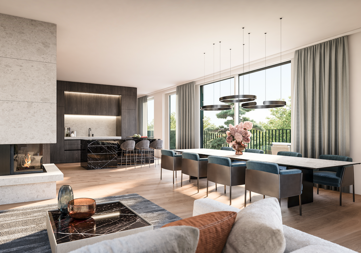 Die Ausstattung dieses Penthouses lässt keine Wünsche offen: Edle Eichendielen und Fußbodenheizung sorgen für ein behagliches Wohngefühl. Bodentiefe Holz-Aluminium-Fenster mit elektrischen Sonnenschutz-Screens, eine Multi-Split-Klimaanlage sowie KNX-Bus-Vorbereitung bieten modernen Komfort. Für entspannte Abende ist ein Kaminzug im offenen Wohn-/Essbereich vorhanden. Ein direkter Aufzug zur Wohnung, barrierearmer Zugang und ein Tiefgaragenstellplatz mit E-Lade-Vorrüstung runden das exklusive Gesamtpaket ab.