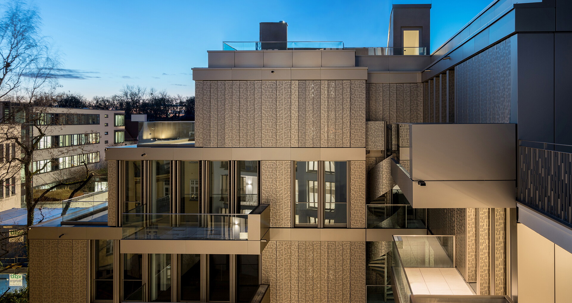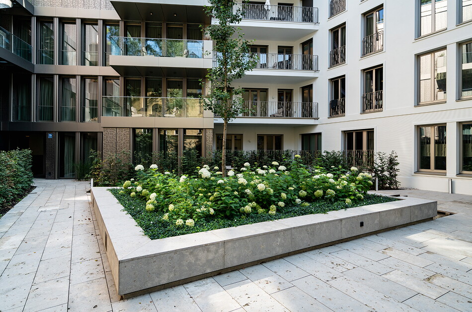 Trogerstraße 19 ist ein architektonisches Statement zwischen Zeitgeist und Zurückhaltung. Entworfen vom renommierten Büro Landau + Kindelbacher, präsentiert sich das Ensemble als gelungene Synthese aus historischer Einbindung und moderner Formensprache. Die klassisch gegliederte Fassade an der Trogerstraße nimmt Anklänge an den Jugendstil auf, während das Rückgebäude mit markanten Metallakzenten und klarer Linienführung einen zeitgemäßen Kontrapunkt setzt. Der sorgfältig gestaltete Innenhof bildet den ruhigen Mittelpunkt – ein Ort der Ruhe, Gestaltung und Identität. Architektur mit Haltung – subtil, wertig, präzise.
